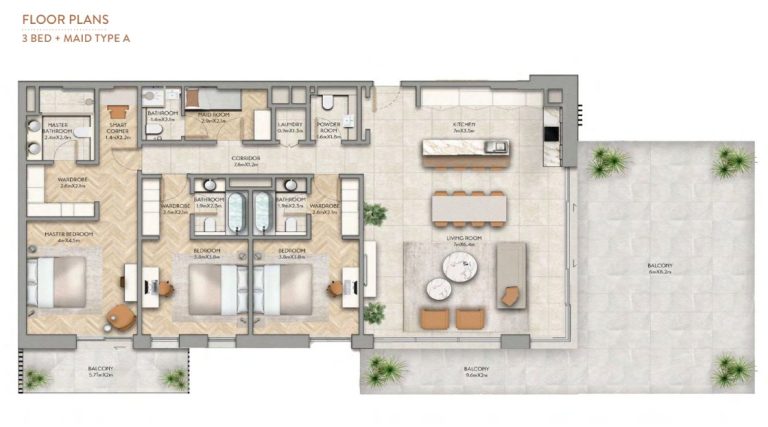 The architectural design and interiors are a collaboration with the acclaimed firms Woods Bagot and Mustard & Linen. Kitchens feature refined finishes inspired by renowned chef Izu Ani, while high-end materials such as marble, natural wood, and stone highlight the project’s premium character.